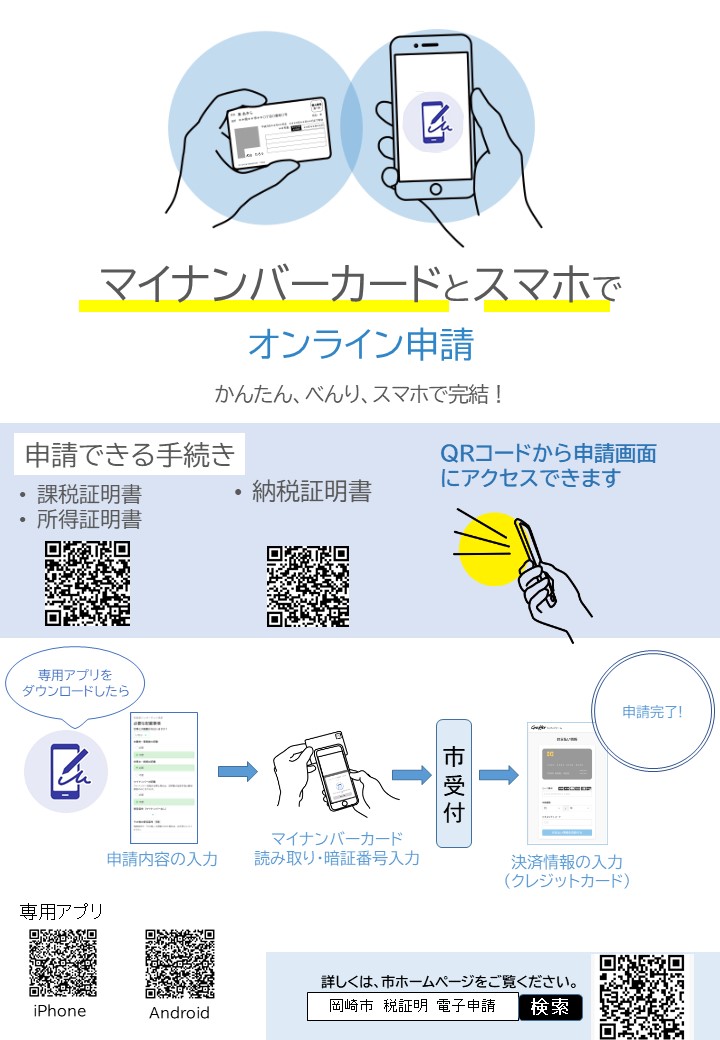 申請はこちら(https://ttzk.graffer.jp/city-okazaki/smart-apply/apply-procedure-alias/kazeishomei )からです。