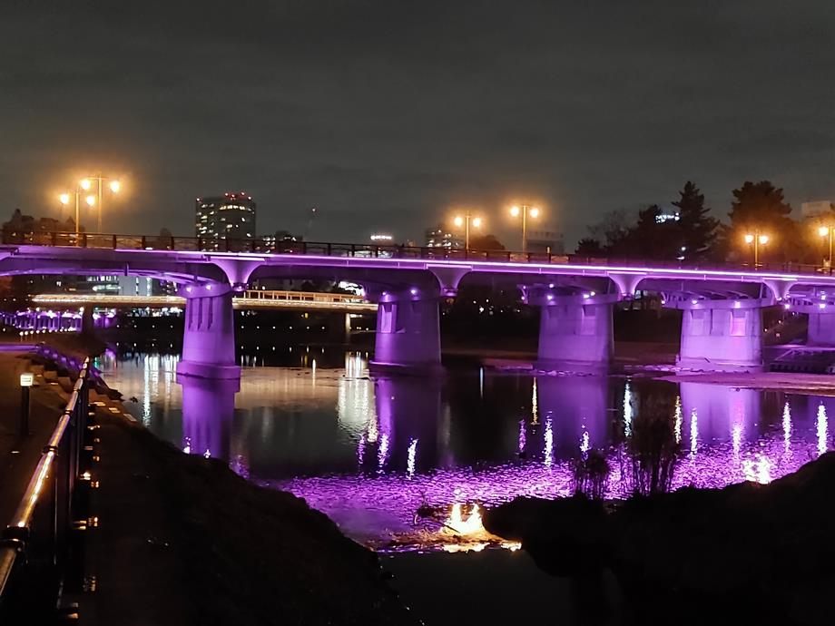 岡崎市内を流れる乙川に架かる殿橋と明代橋においてパープル・ライトアップを実施します。