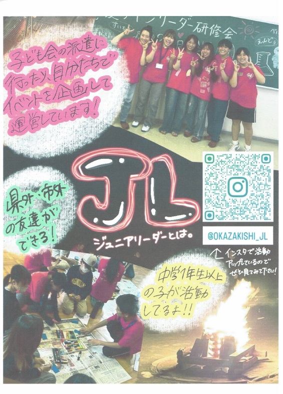 岡子連ジュニアリーダーズクラブ(O・J・L・C )は、子ども会活動をサポートするために組織された、中高生を中心とした団体です。