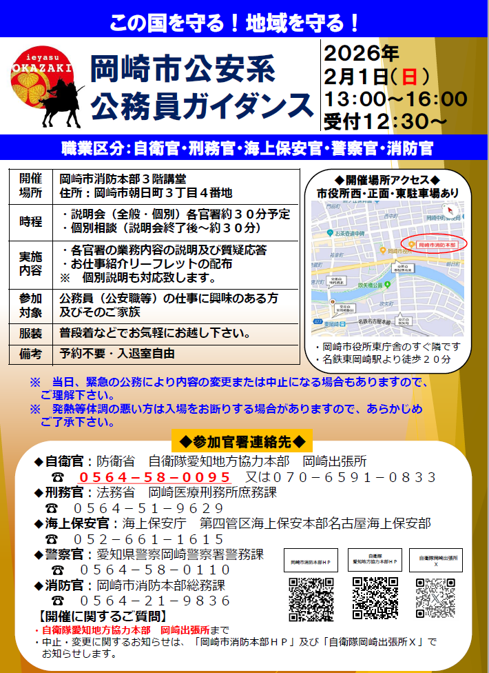 ホーム > 暮らし > 消防 > 新着ニュース > 岡崎市公安系公務員ガイダンスの開催について