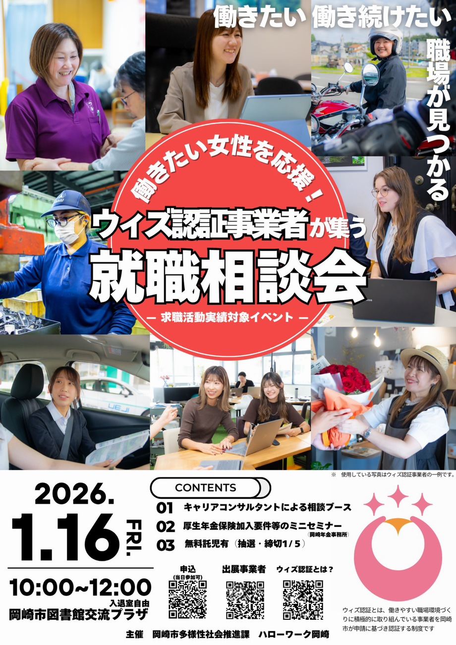本就職相談会には、岡崎市が定める働きやすい職場環境の基準を満たしたウィズ認証事業者が出展します。