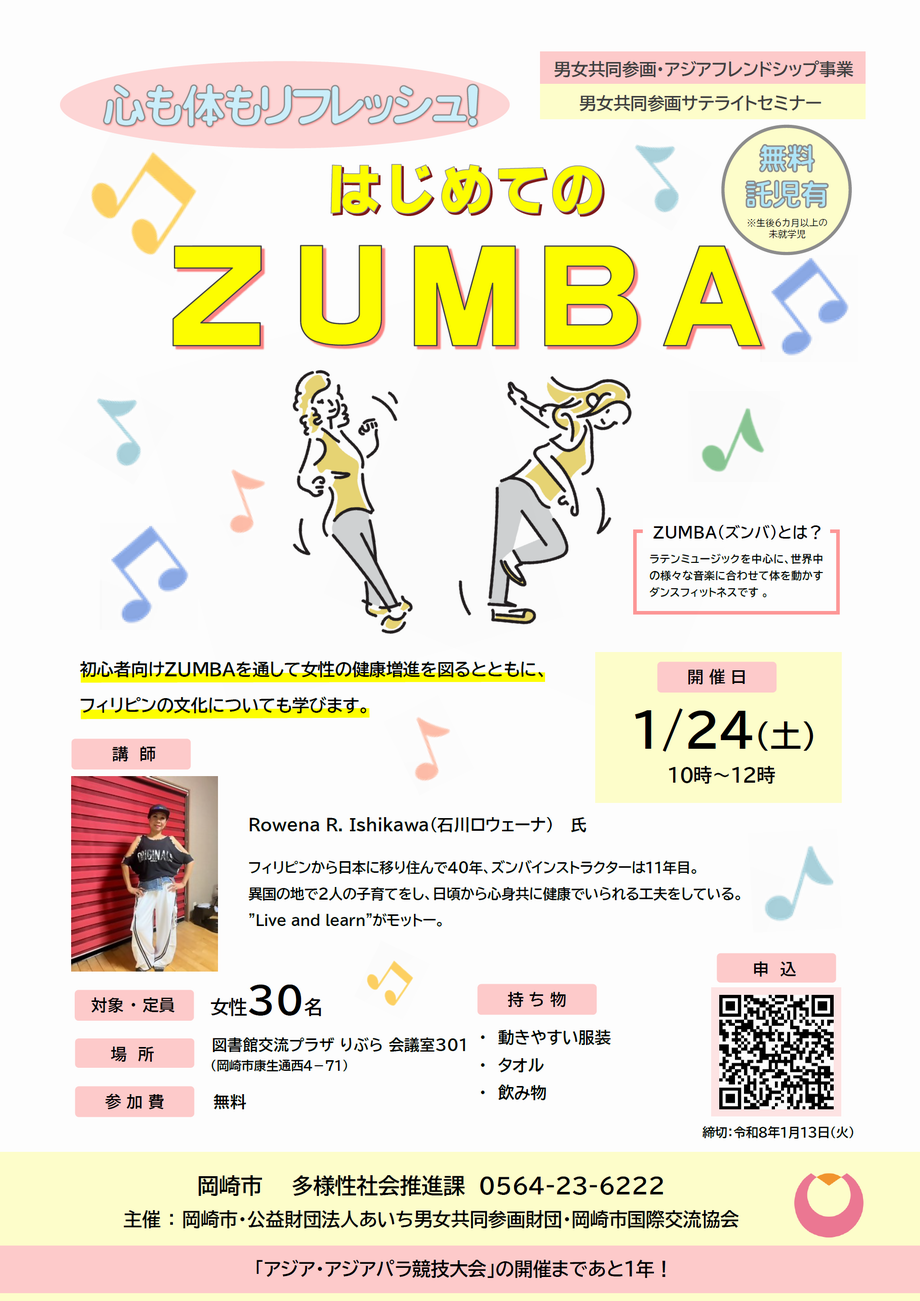 「心も体もリフレッシュ!はじめてのZUMBA」を開催します。
