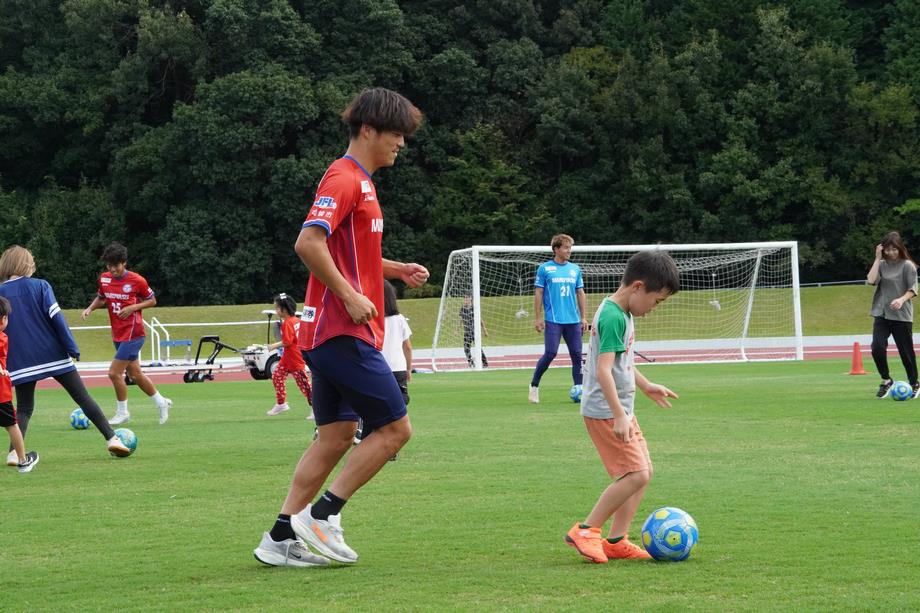 当日は、ウォーミングアップやボールのパスなどを親子で体験していただいた後、お子さんにサッカー教室を楽しんでいただきます。現役のJFL選手やコーチが、未経験のお子さんにも優しく指導します。