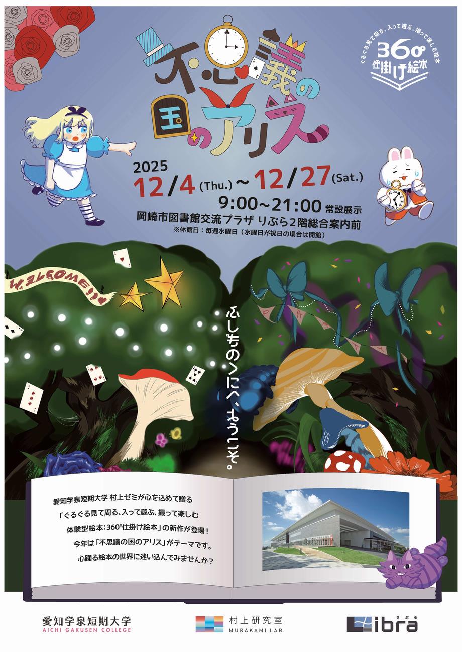 図書館交流プラザの来館者に居心地の良い空間を提供するために愛知学泉短期大学の学生による「不思議の国のアリス」の絵本をモチーフとした展示物等を設置します。