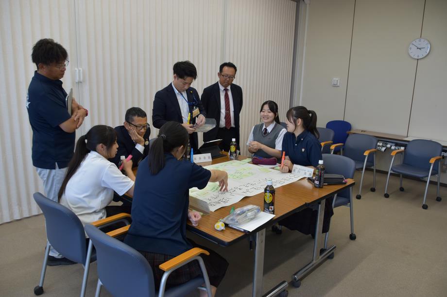 高校生4~6名と市議会議員2~3名が一つのグループとなり、議員が提案した四つのテーマについて話し合いました。