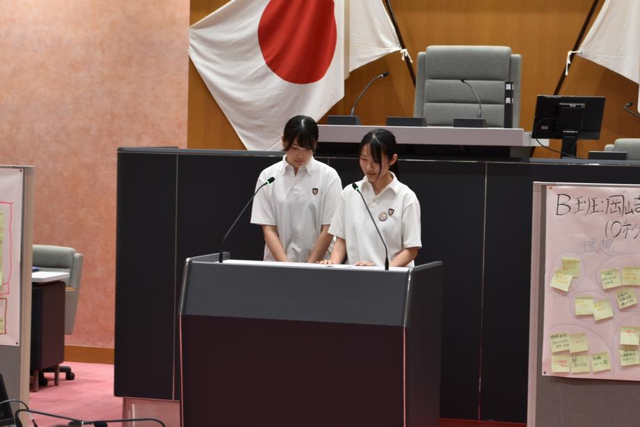 生徒代表の方が、行事や部活動、特色ある取り組みについて、議場で発表を行いました。